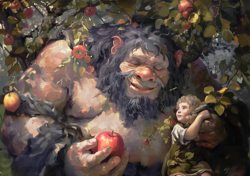 L’homme et l’enfant enterrèrent secrètement la dépouille de l’ogre à l’endroit du jardin. Quelques jours à peine après son enterrement, la nature reprit une vigueur sans précédent et dans toute la région, les récoltes se remirent à pousser avec une abondance jamais connue auparavant.