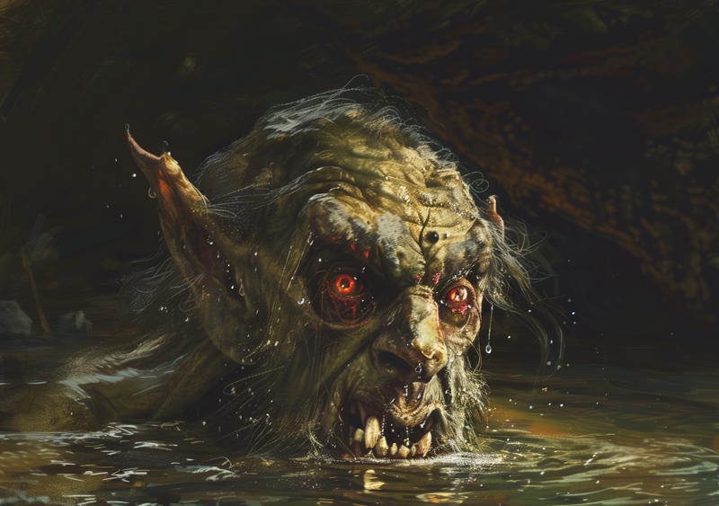 Cette créature aux oreilles et dents pointues, surgit d’un coup de l’eau et les capture dans ses longues mains fourchues. Ils les emmèneraient au fond des eaux pour les faire disparaitre à jamais.